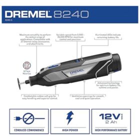 Dremel 8240 12V Cordless Rotary Tool Kit with Variable Speed and Comfort Grip – Includes 2AH Battery Pack, Charger, 5 Accessories & Wrench, Tool Fabric Carry Bag, and Instruction Manual