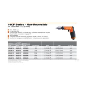 BURR NOT INCLUDED. Product Image May Not Reflect This Model. Please Check Technical Specifications For Details.Dotco 12-20 Series Inline Grinder with 200 Series Collet Exhaust: Rear Collet Size: 1/4” Throttle Type: Button Free Speed (rpm): 25000 Abrasive Capacity: 3/4” Carbide Burr, 1.5” Mounted Wheel Type Housing: Composite Weight: 1.4lbs / 0.64kg