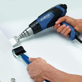 Hot glue guns are now indispensable in the trade and industry. Factors such as quality, reliability and ergonomics are the most important requirements especially for professional use. The GluPRO 300 sets new standards in this respect. Their robustness and design are designed to work easily and without fatigue. The stroke adjustment allows the adhesive quantity per stroke to be adjusted individually. The non-slip handle provides additional safety when working. Heating and electronics also stand up to a long and hard use.